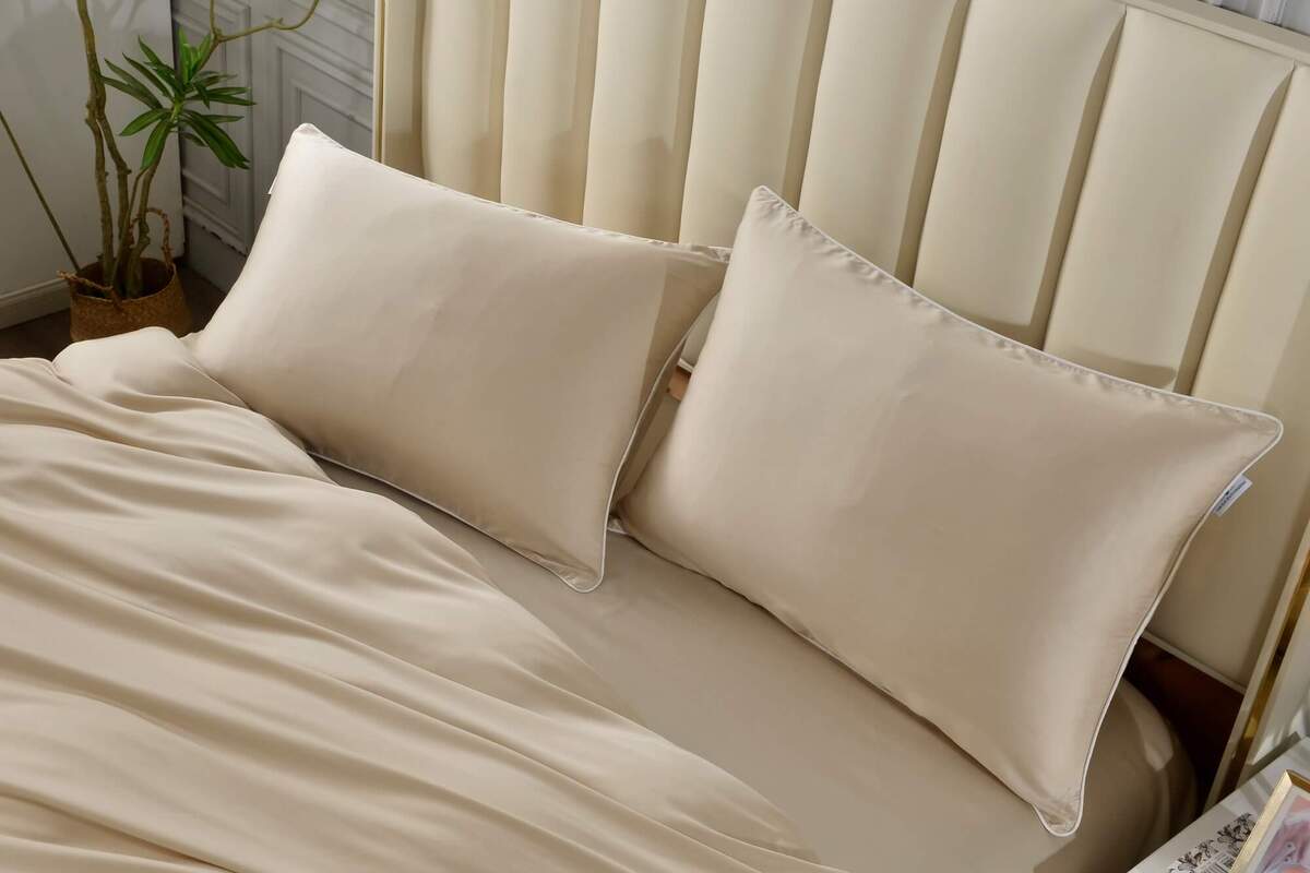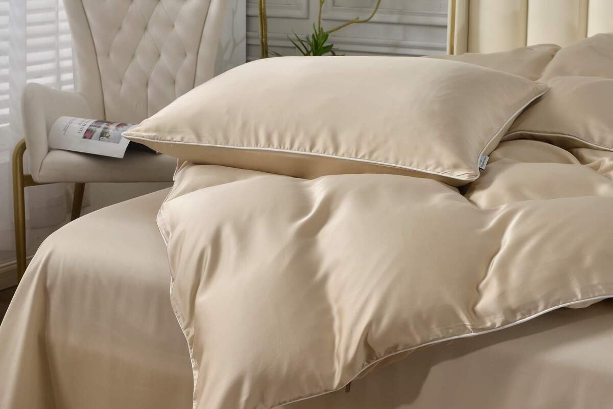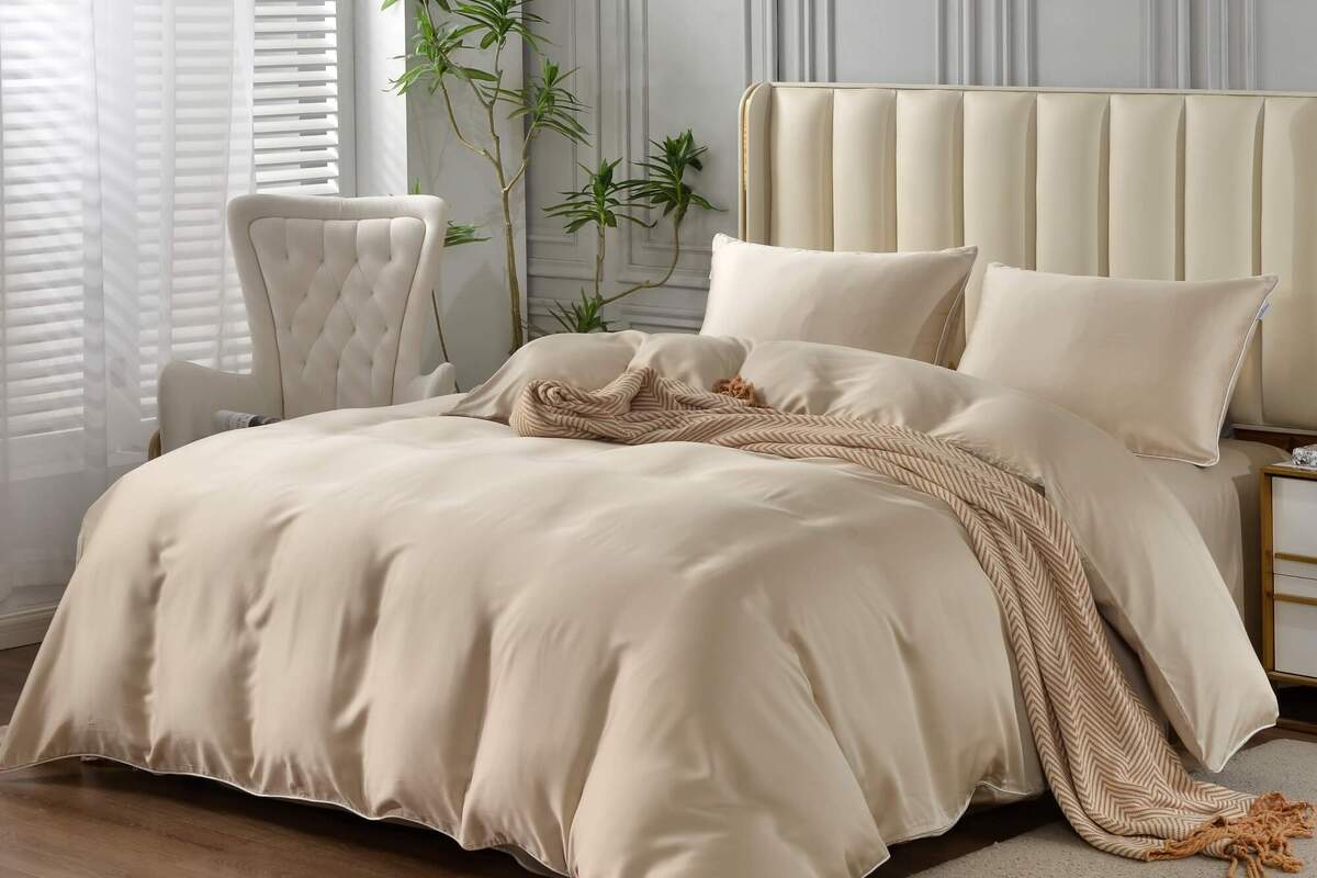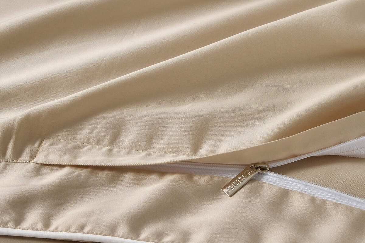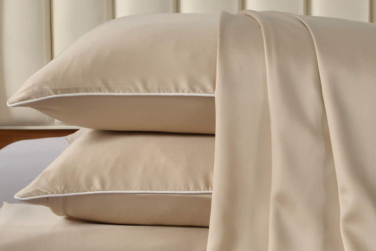 Для нашего фирменного постельного белья Elizabeth мы используем 100% тенсель (эвкалиптовое волокно) пряжи 60s, сатиновое плетение плотностью 300ТС. Комплект выполнен в однотонном дизайне с изящным белым кантом по краю пододеяльника и наволочек.