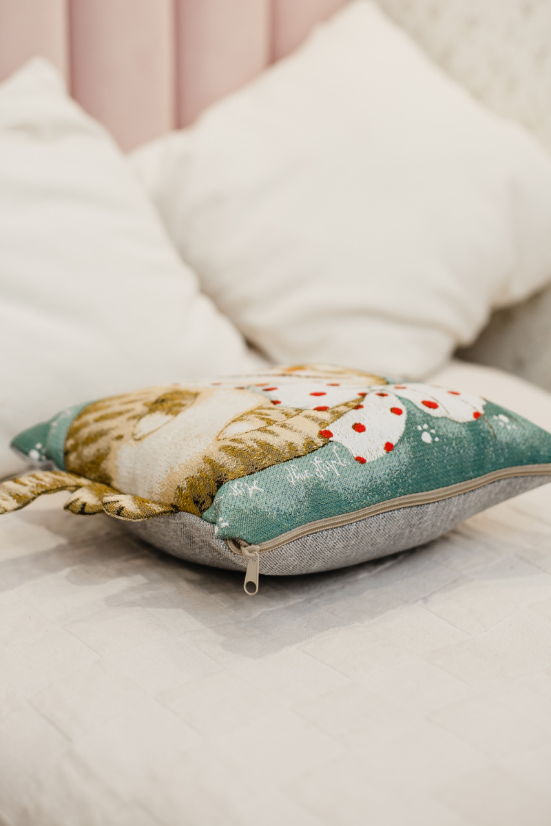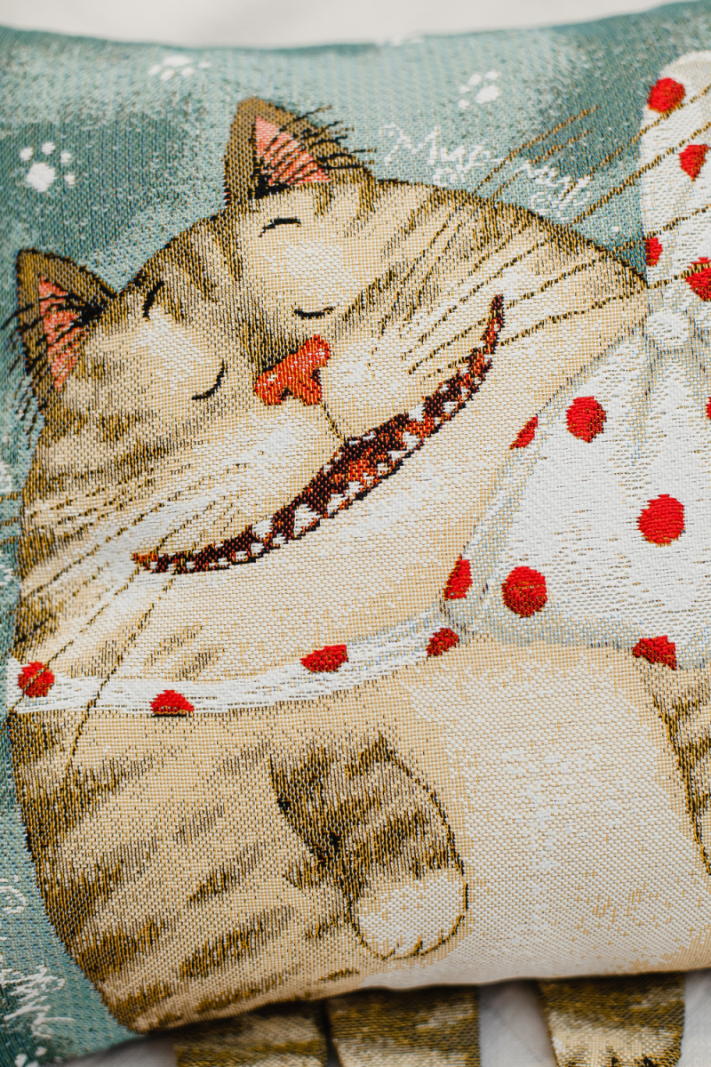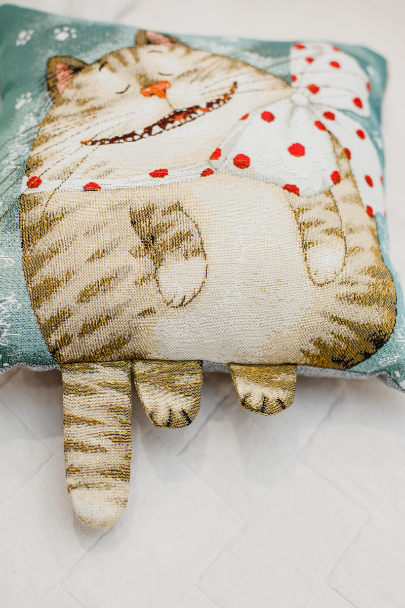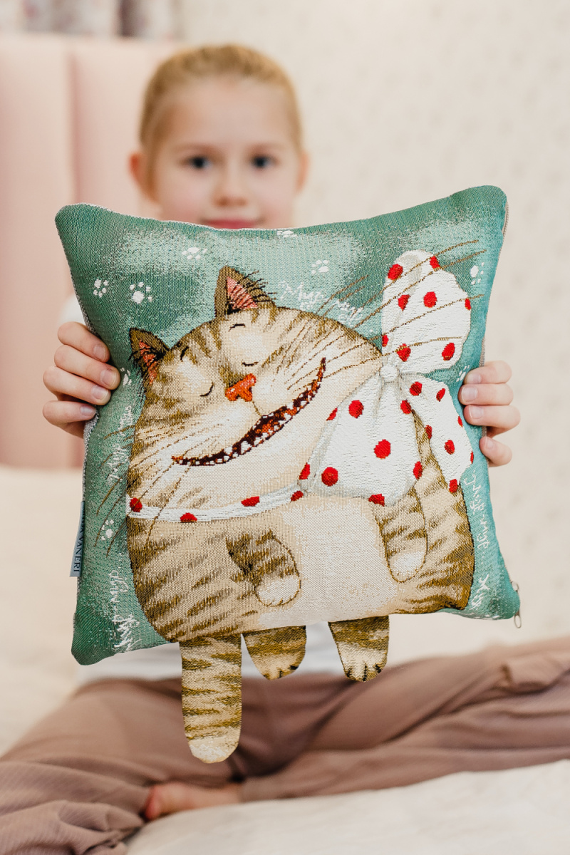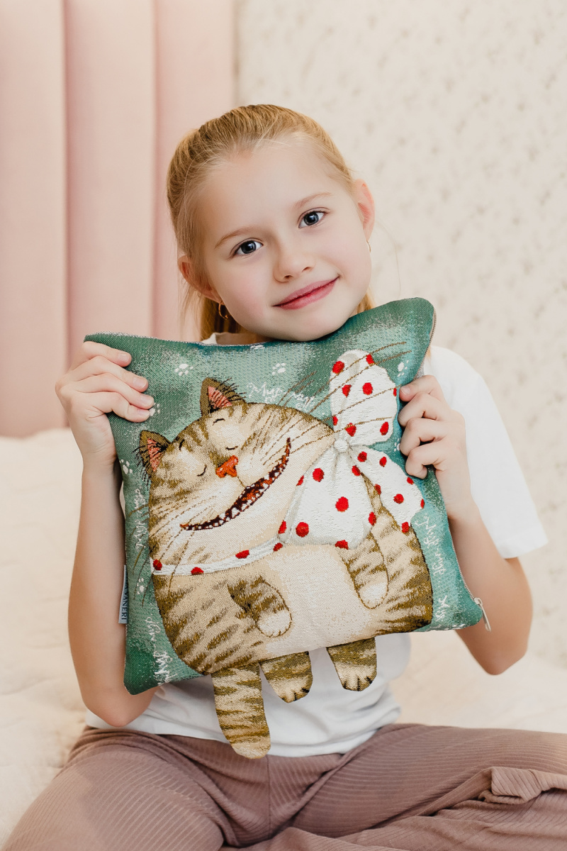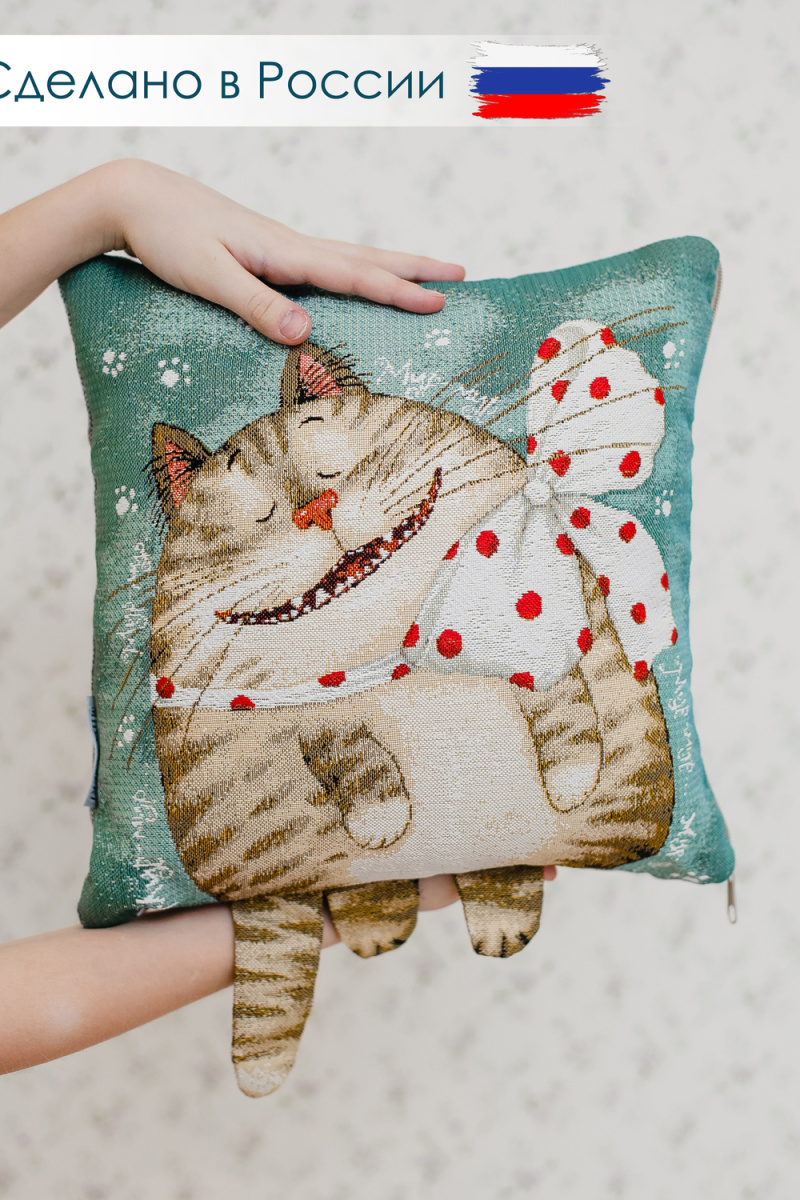 ВАЖНО размер может не много отличаться +- 3 см!!!!! Односторонняя наволочка декоративная с ушками размером 32х32 см(+-3см). У наволочки гобеленовой молния находиться в нижнем шве изделия. Уход - машинная стирка при 30 градусах на деликатном режиме с закрытой молнией. Не смешивать при стирке с другими тканями. Утюжить на среднем температурном режиме. При правильном уходе гобеленовая наволочка декоративная прослужит долгие годы в неизменном состоянии: не линяет, не дает усадку. Качественная, удобная в использовании, устойчивая к истиранию красок и деформациям при стирке, такая декоративная наволочка гобеленовая будет долгие годы радовать красотой и эстетичностью! Обратная сторона наволочки из однотонной рогожки. Прекрасный рисунок котика на наволочке декоративной гармонично дополнит самый изысканный интерьер, привлекая внимание своей теплотой и оригинальностью. Мягкий материал необычайно приятен и прочен. Гобеленовое изделие так же подойдет в качестве ПОДАРКА внучке, дочке или племяннице, так как подушка игрушк