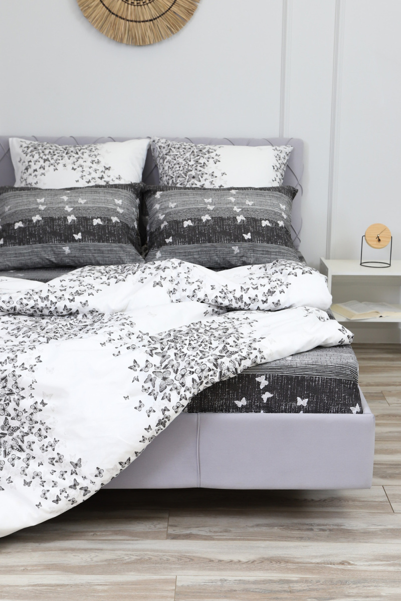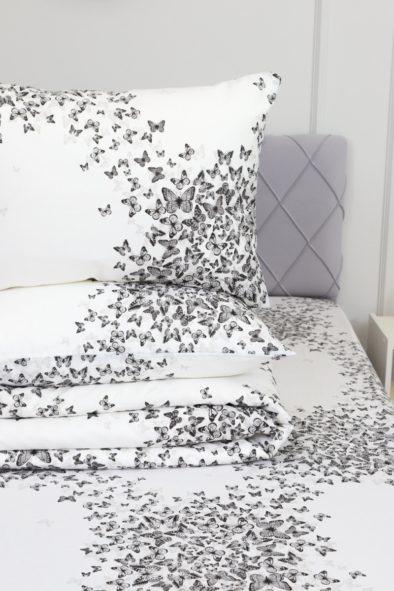 В данной расцветки Вы можете приобрести простыни и пододеяльники. Также представлен весь ассортимент в ткани Бабочки-компаньон. Создайте идеальный комплект постельного белья для Вашего сна!