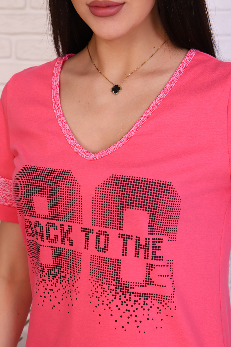 Молодежный яркий костюм из кулирки футболка + шорты. Футболка из однотонной ткани с печатью, рукава короткие, горловина V-образная, шорты из набивной ткани, с карманами